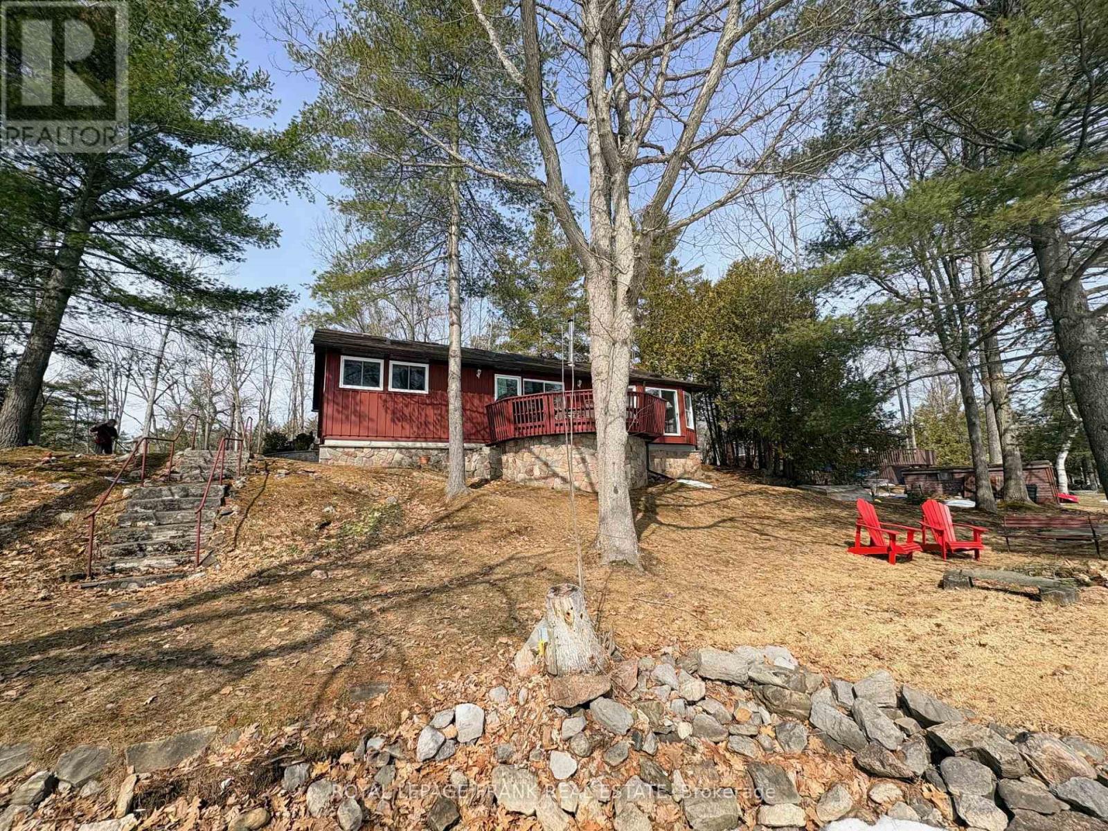 Stoney Lake. Year-round bungalow style lake house. Gorgeous open lake and island view with sunrise exposure. Good swimming frontage - level, gently sloping property with mature pine trees. This property also has frontage on a quiet back bay which is perfect for children or adults to explore. The home features 3 bedrooms, an open concept design with walkout to large lakeside deck, wood burning fireplace, 2 bathrooms, laundry - mud room, forced air heat and central air conditioning. Located on a privately maintained, year-round road - with both year-round and seasonal neighbours. Upper- Stoney location with a "Crown Land" island in sight and a short paddle away. Well maintained home. Enjoy all four seasons on beautiful Stoney Lake. (id:56087)